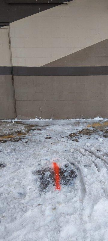 Responded to commercial toilet backup service call. Successfully cleared blockage using heavy-duty snake equipment extending over 100 feet through the drain line. Exterior inspection revealed potential utility markings that may indicate underground service lines near the building's foundation.