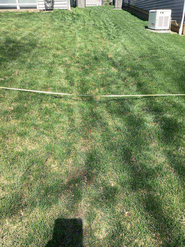 Responded to service call for standing water issue in residential backyard. Performed site assessment and documented existing drainage conditions with measurements to evaluate water accumulation patterns in lawn area. Provided customer with drainage solution options, including french drain installation recommendations to address the standing water problem.